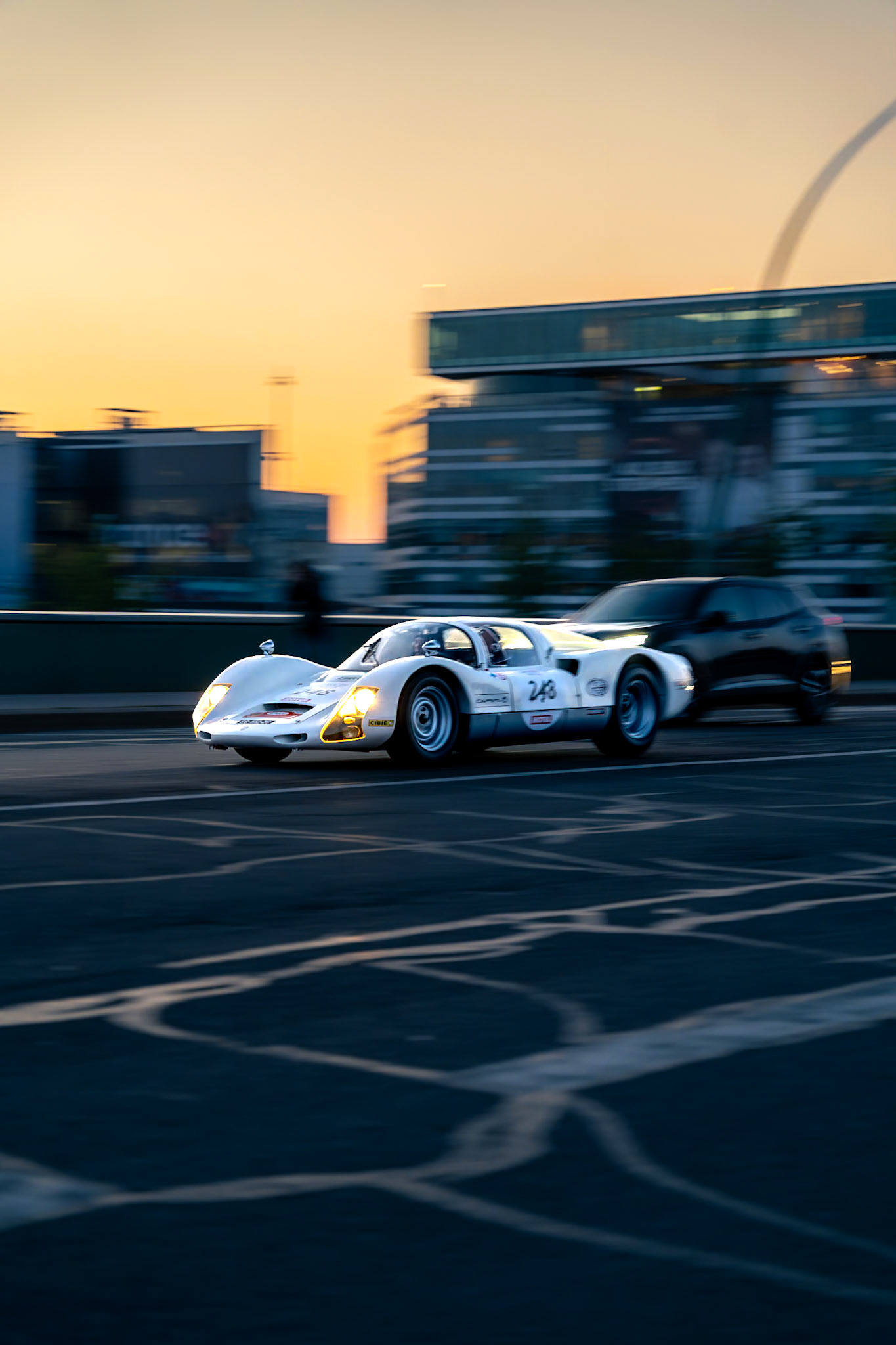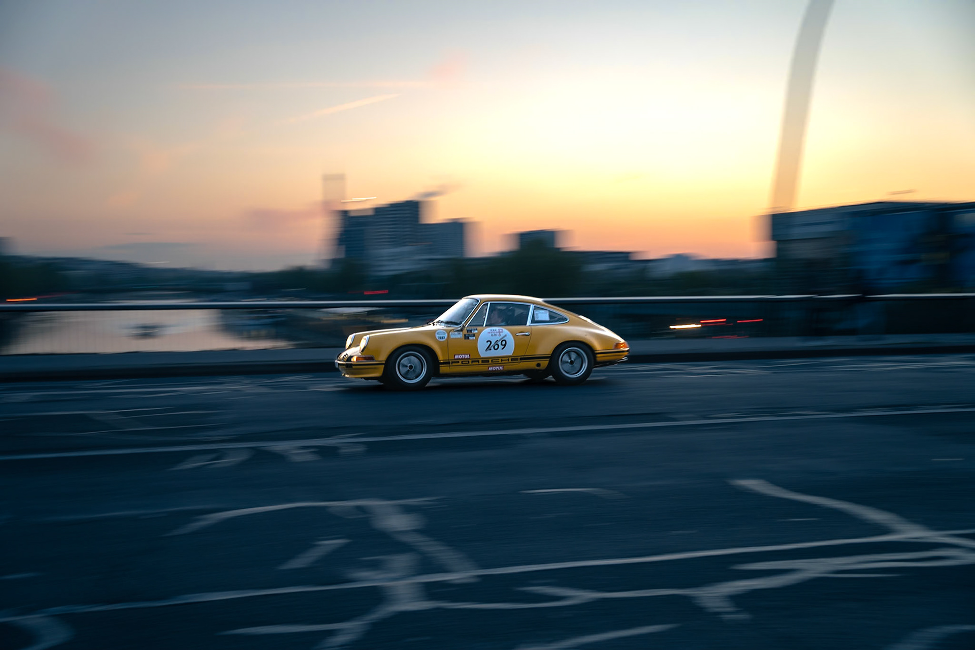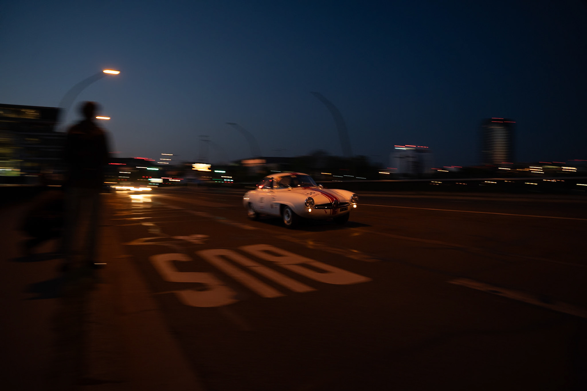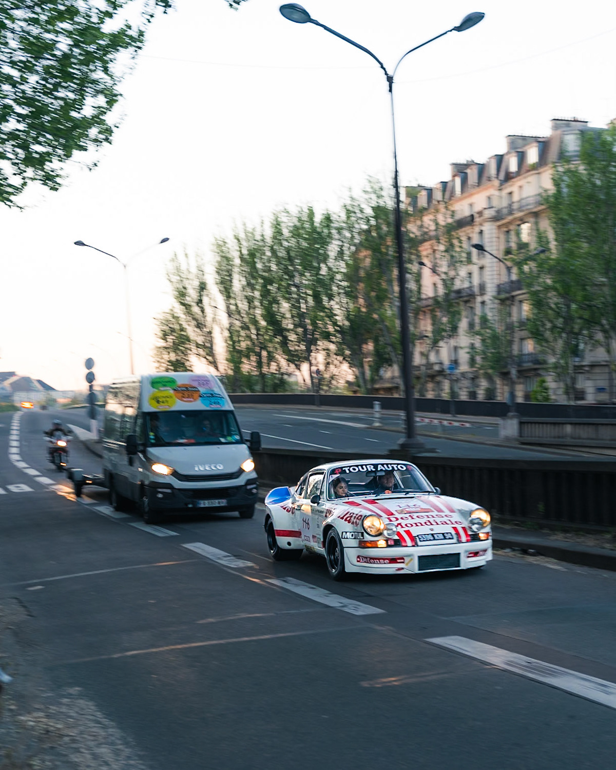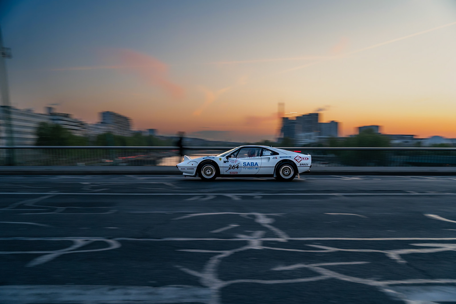 Tour Auto 2024 left on the 23/04/2024 early morning. The first glimpse of lights offered a beautiful sky that served as the most appropriate background for these vintage race cars.